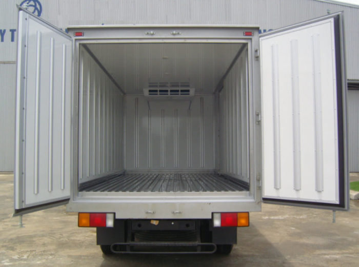 Thùng xe có cấu trúc chắc chắn với đà dọc làm từ nhôm đúc hình chữ Z. Sàn thùng được thiết kế âm bên trong, sử dụng panel composite phẳng ở bề mặt ngoài và lớp Foam cách nhiệt PU ở bên trong, đạt tỷ trọng cao. Lớp sàn trên cùng là inox 304 dập sóng có máng và van thoát nước tiện lợi. Bề mặt trong và ngoài của thùng sử dụng panel composite cao cấp, lớp Foam PU cách nhiệt nhập khẩu, đảm bảo chống thấm nước và không bị phồng rộp sau thời gian sử dụng, giữ nhiệt hiệu quả. Các góc và viền thùng được ốp bằng nhôm.